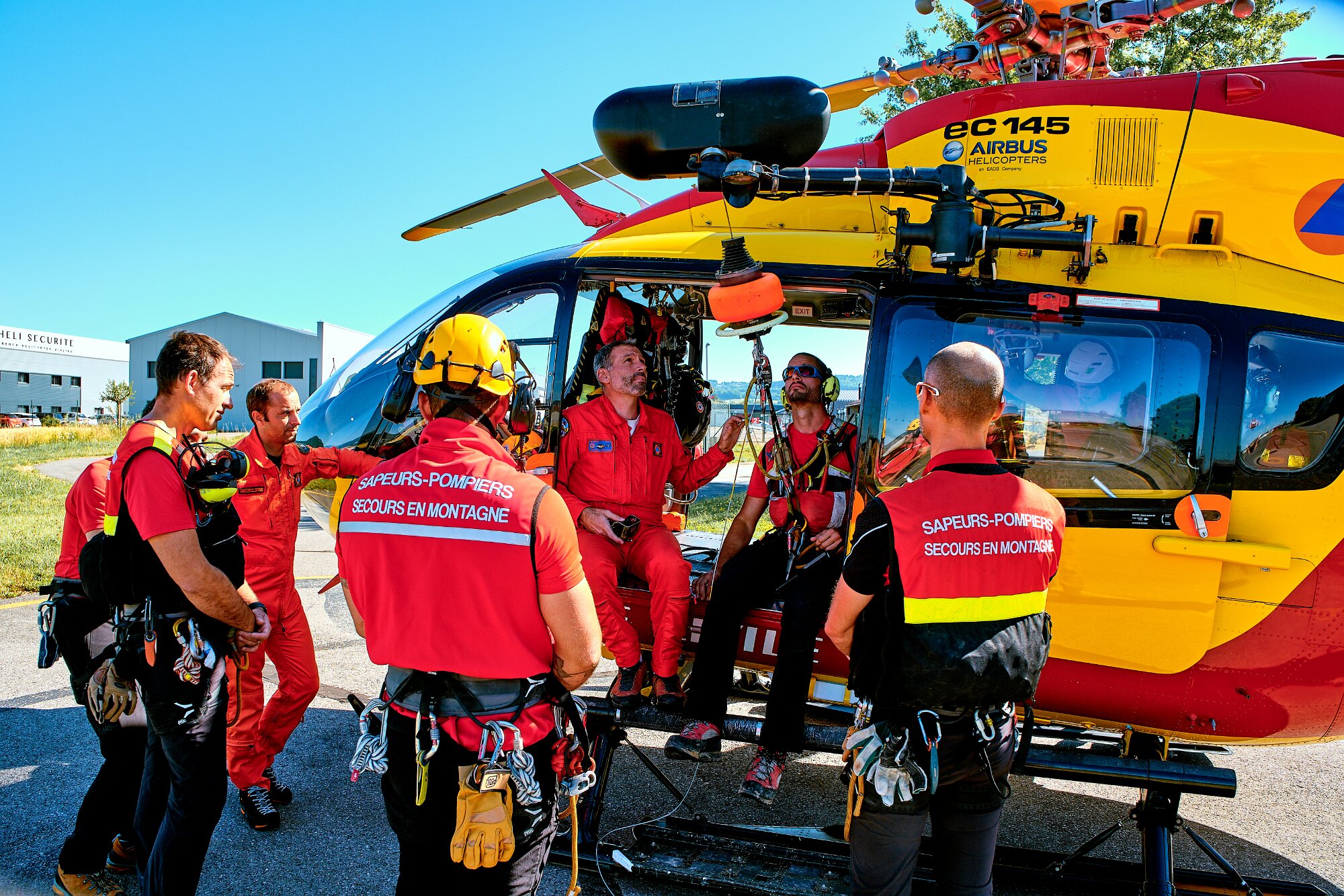 J’ai pu assister au briefing de deux équipes et aux exercices d’hélitreuillage lors de cet entraînement.